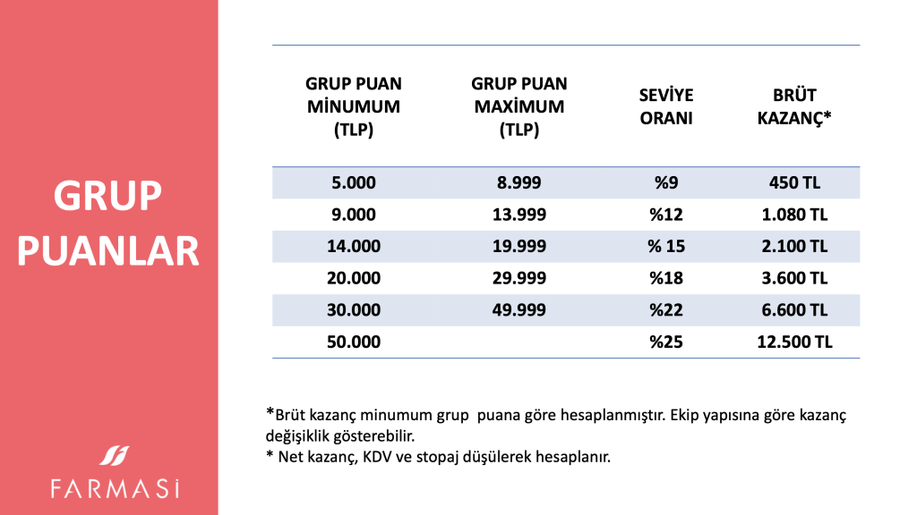 Farmasi Gelir Elde Etme Planı’nınız; satış hacminize ve ekibinizin performansına bağlı olarak değişir. Örneğin, aylık satış miktarınıza göre %30 ile %40 arasında komisyon alabilirsiniz. Bunun yanı sıra, ekibinizin başarısına göre ekstra bonuslar alabilirsiniz. Örnek bir hesaplama yapmak gerekirse, 10.000 TL’lik bir satış yaptığınızda yaklaşık 3.000 TL komisyon kazanırsınız. Ayrıca, ekibinizin satış hacmi de yüksekse, bu gelir ek olarak liderlik bonusları da eklenecektir.