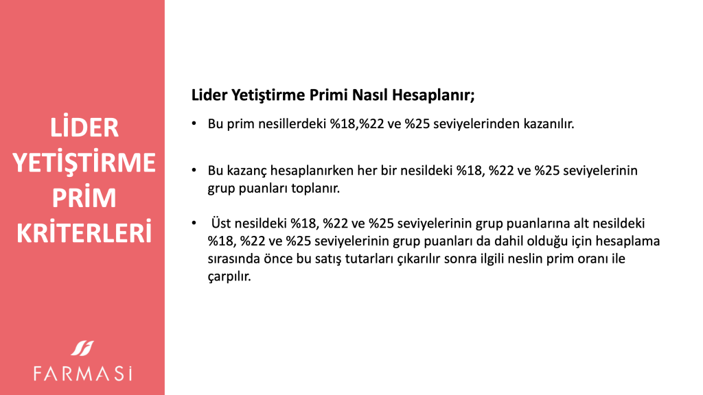 Farmasi liderlik programı, gelirlerinizi daha da artırmak için mükemmel bir fırsattır. Kendi ekibinizi yöneterek onların performansını artırabilir ve daha yüksek gelirler elde edebilirsiniz. Liderlik bonusları, ekibinizin başarısına göre ek gelir sağlar. Ayrıca liderlik seviyesine ulaştığınızda, Farmasi’nin sunduğu çeşitli teşvik programlarına katılabilirsiniz. Bu programlar, hem motivasyonunuzu artırır hem de gelirinizi daha üst seviyelere taşır